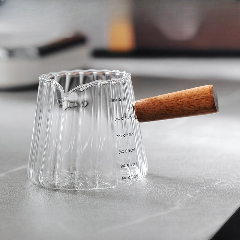 Home > 1 Pcs 180ml Mini Coffee Cup, Glass Milk Cup, Italian Coffee Cup With Wooden Handle, Coffee Measuring Cup