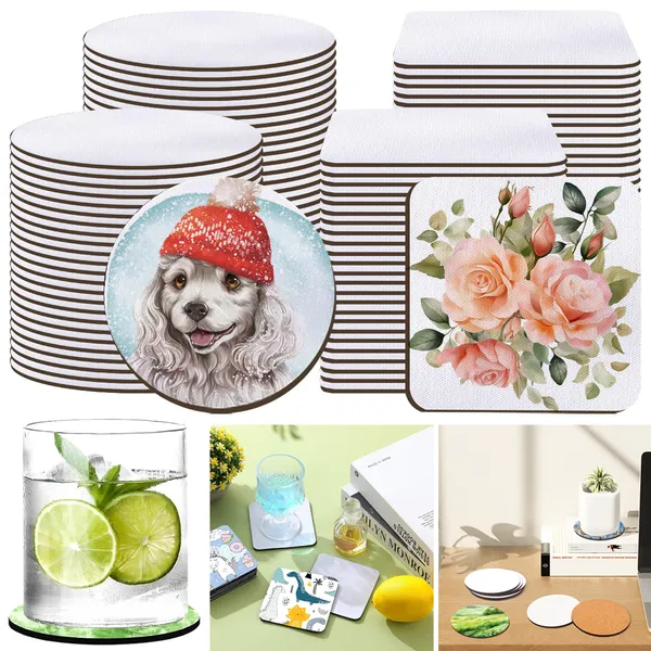 Home > 24pcs Sublimation Blank Cup Coasters Bulk Heat Transfer Coasters 4x4 Inch Round Square Blank Cup Mat For Sublimation Transfer Heat Press Printing