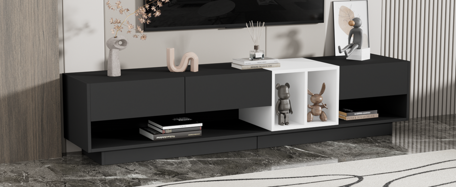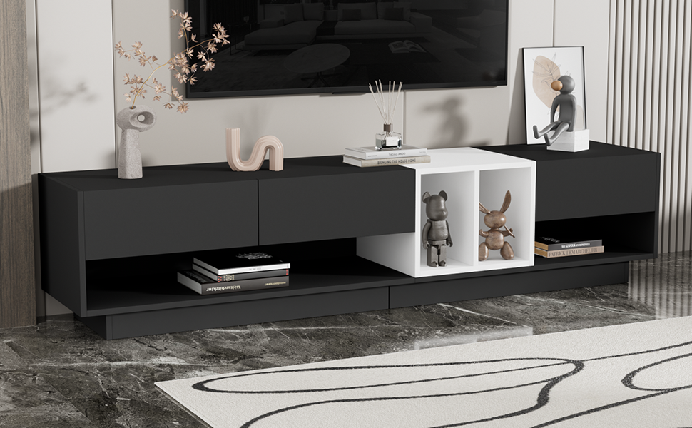 Product Name:ON-TREND Sleek and Stylish TV Stand with Perfect Storage Solution, Two-tone Media Console for TVs Up to 80'', Functional TV Cabinet with Versatile Compartment for Living Room, Black