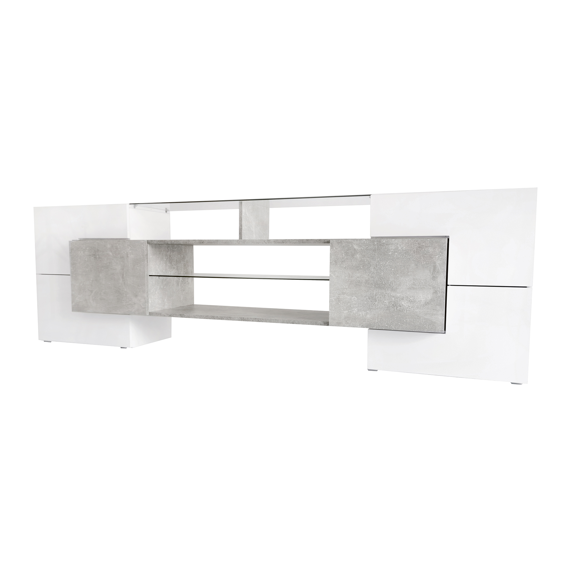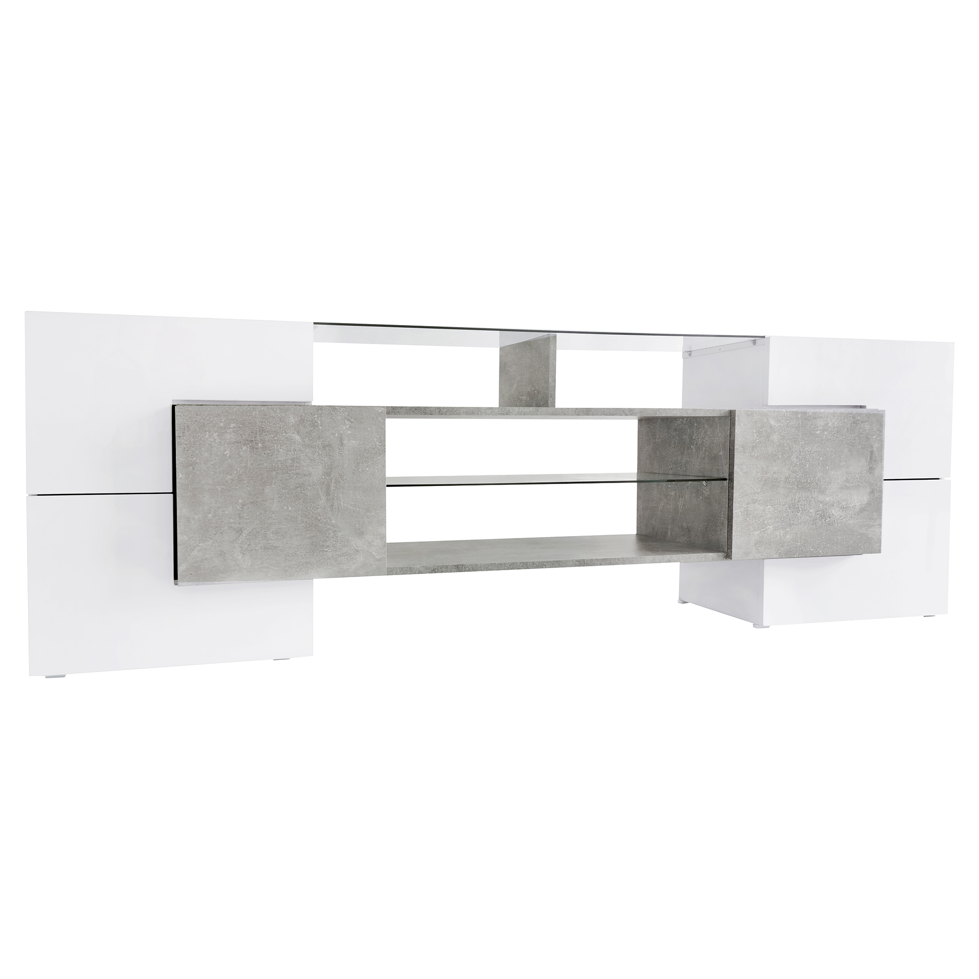 It features different sizes of cabinets, two wooden shelves and two glass shelves, which are ideal for storing your multimedia devices, such as gaming consoles, DVD players and cable boxes, and keeping everything organized and accessible.