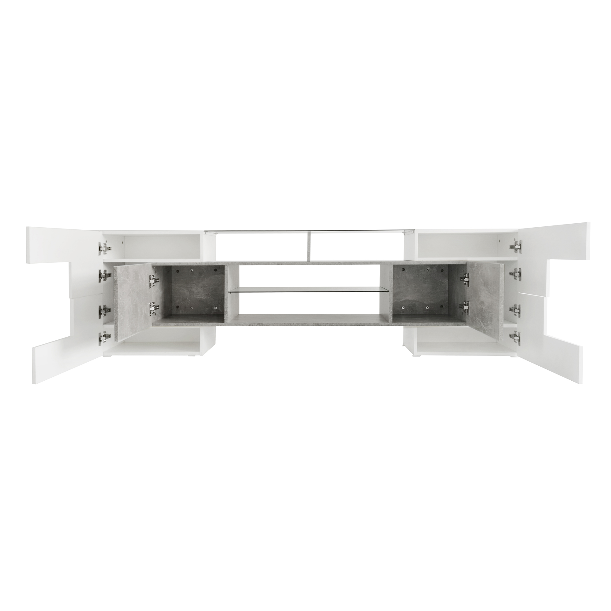 Product Name:ON-TREND Unique Shape TV Stand with 2 Illuminated Glass Shelves, High Gloss Entertainment Center for TVs Up to 88", Versatile TV Cabinet with LED Color Changing Lights for Living Room, Grey