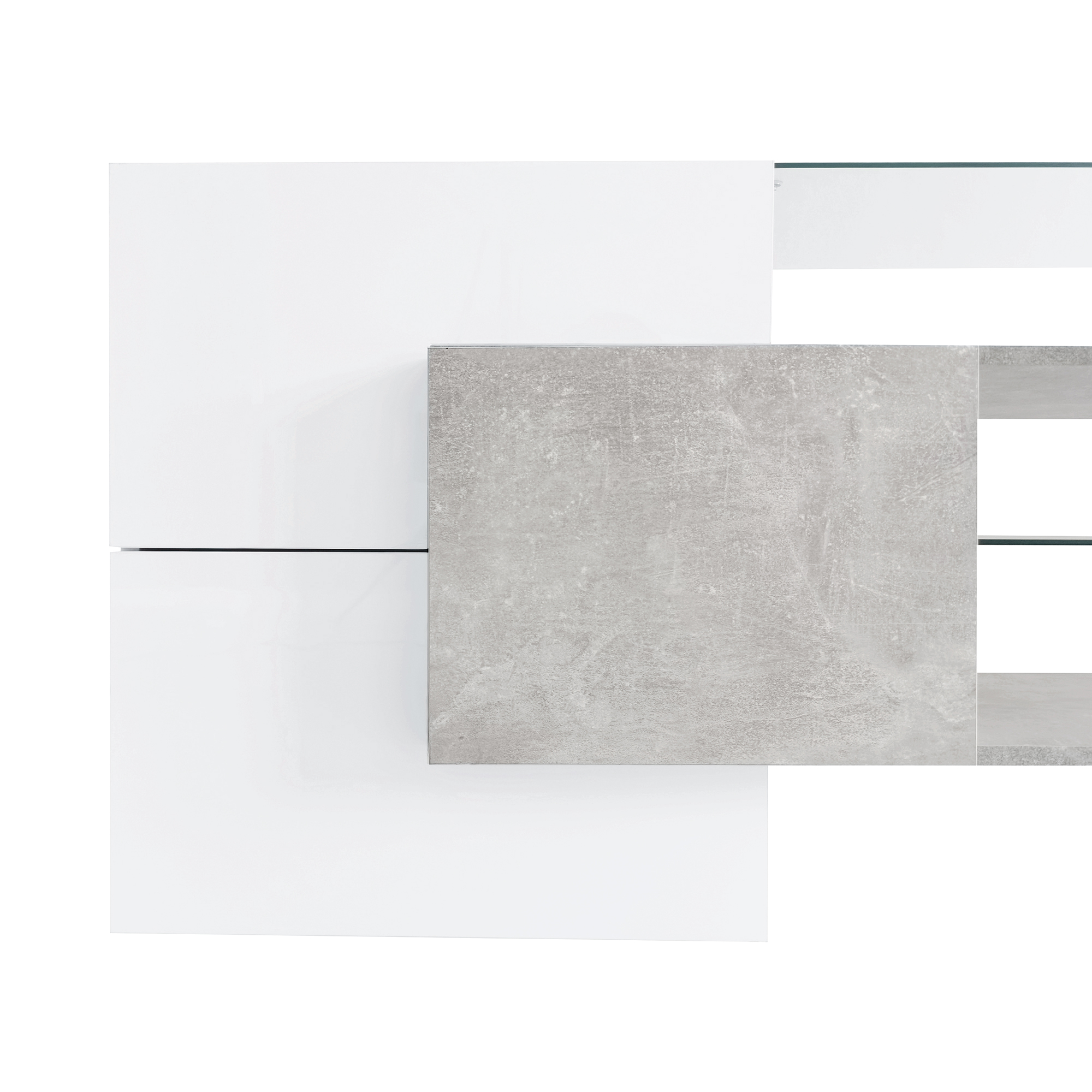 This TV stand is of distinctive design that sets it apart from ordinary cabinets. The door panel is coated with high gloss cover, giving it a glossy finish and a touch of elegance. With clean lines and a unique shape, this cabinet will complement any contemporary home.