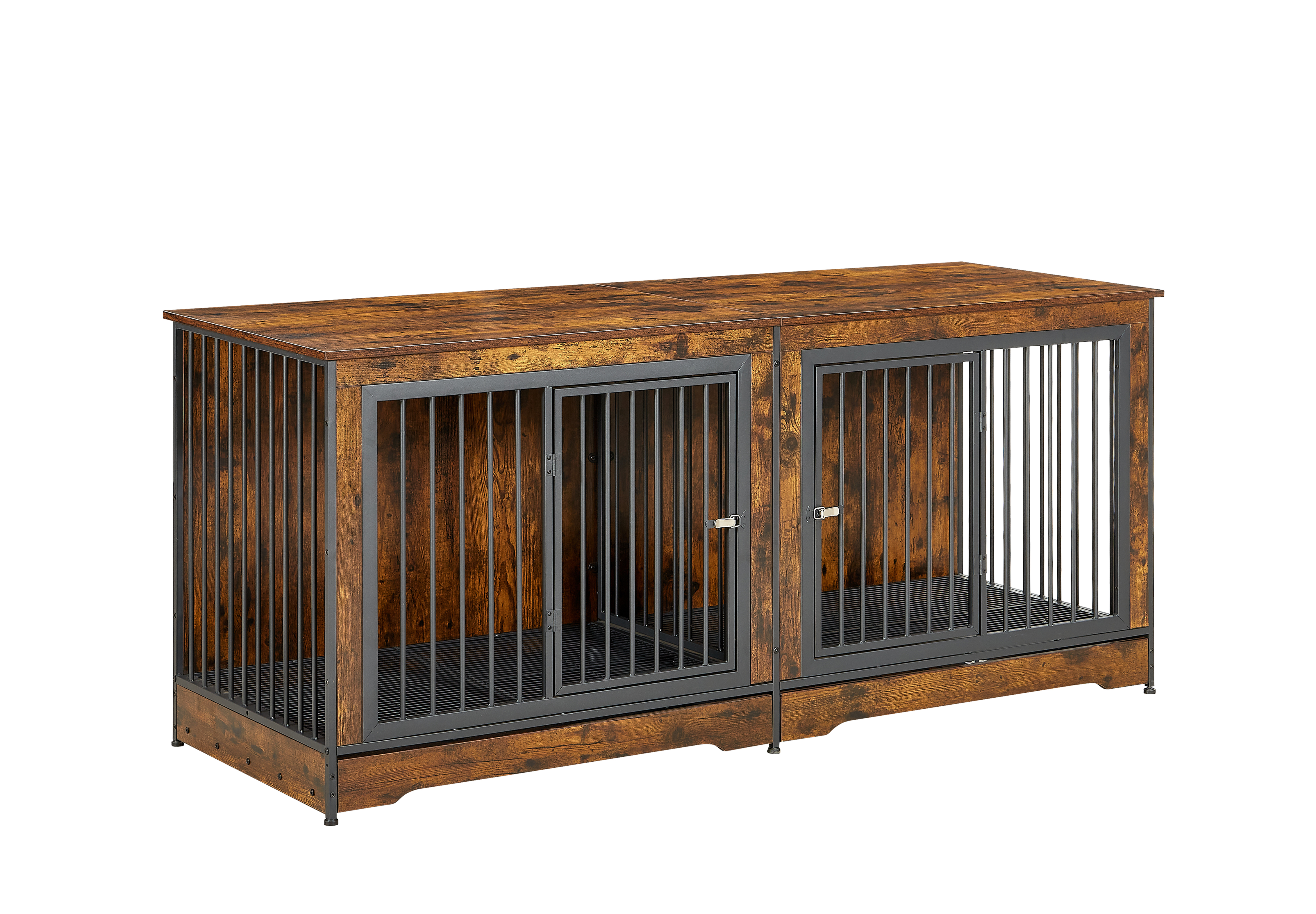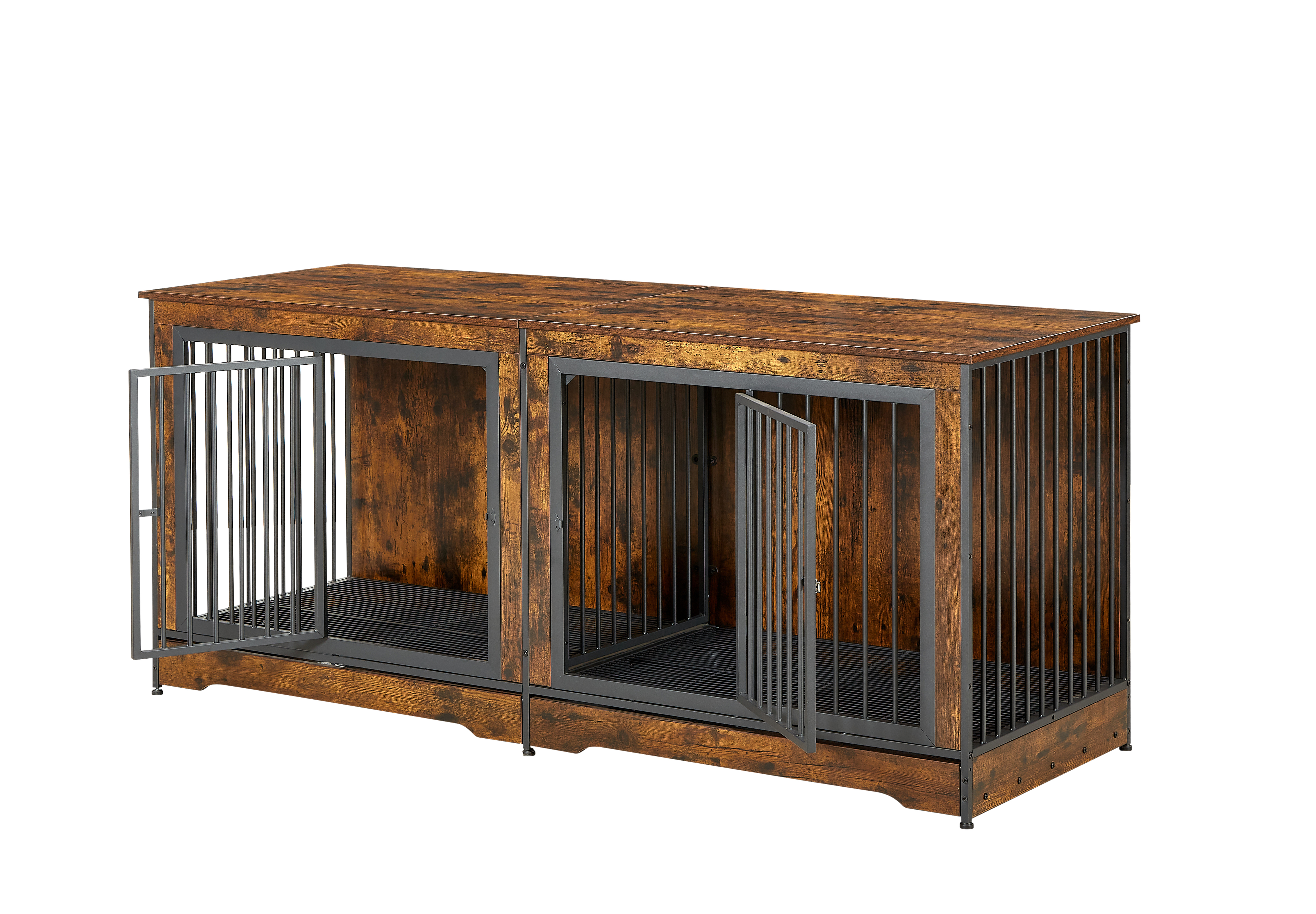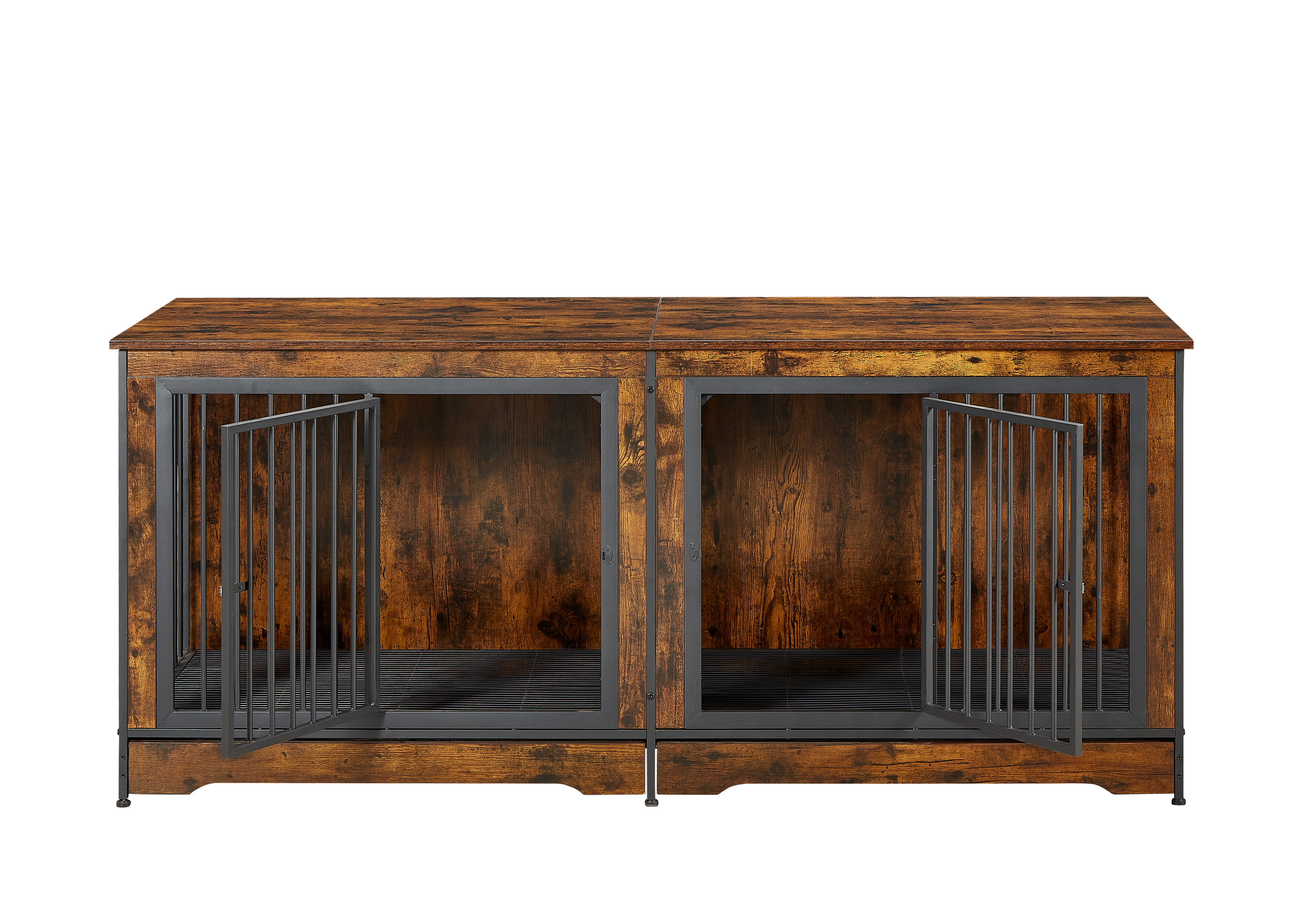 Product Name:Super large dog crate furniture for two dogs with tray, TV stand. Rustic Brown, 75'' W x 26.4'' D x 32.3'' H.